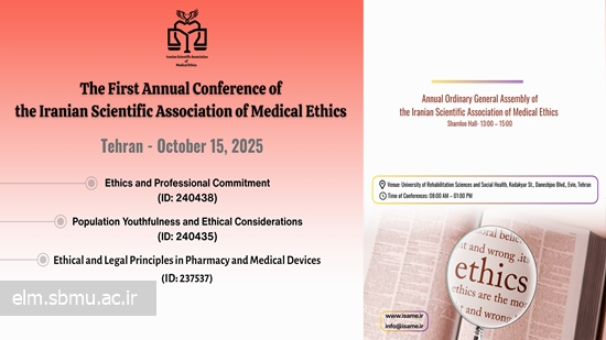 The First Annual Conference of the Iranian Scientific Association of Medical Ethics will address major themes such as ethics and professional commitment, ethical considerations in relation to population youthfulness, and the ethical and legal principles governing pharmacy and medical devices.