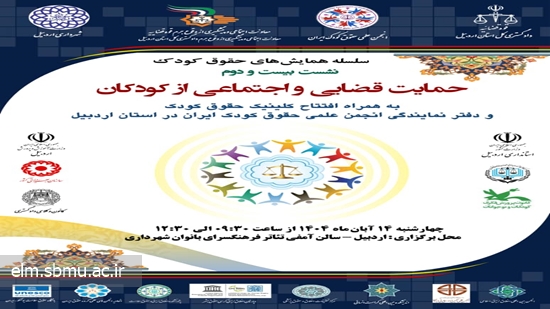 بیستودومین نشست از سلسله همایشهای حقوق کودک با عنوان «حمایت قضایی و اجتماعی از کودکان» روز چهارشنبه ۱۴ آبان ۱۴۰۴ در اردبیل برگزار میشود. محل برگزاری: اردبیل، سالن آمفیتئاتر فرهنگسرای بانوان شهرداری این رویداد با همکاری دادگستری کل استان اردبیل، شورای فرهنگ عمومی استان، کمیسیون ملی یونسکو در ایران و چند نهاد علمی و فرهنگی دیگر برگزار میشود. |